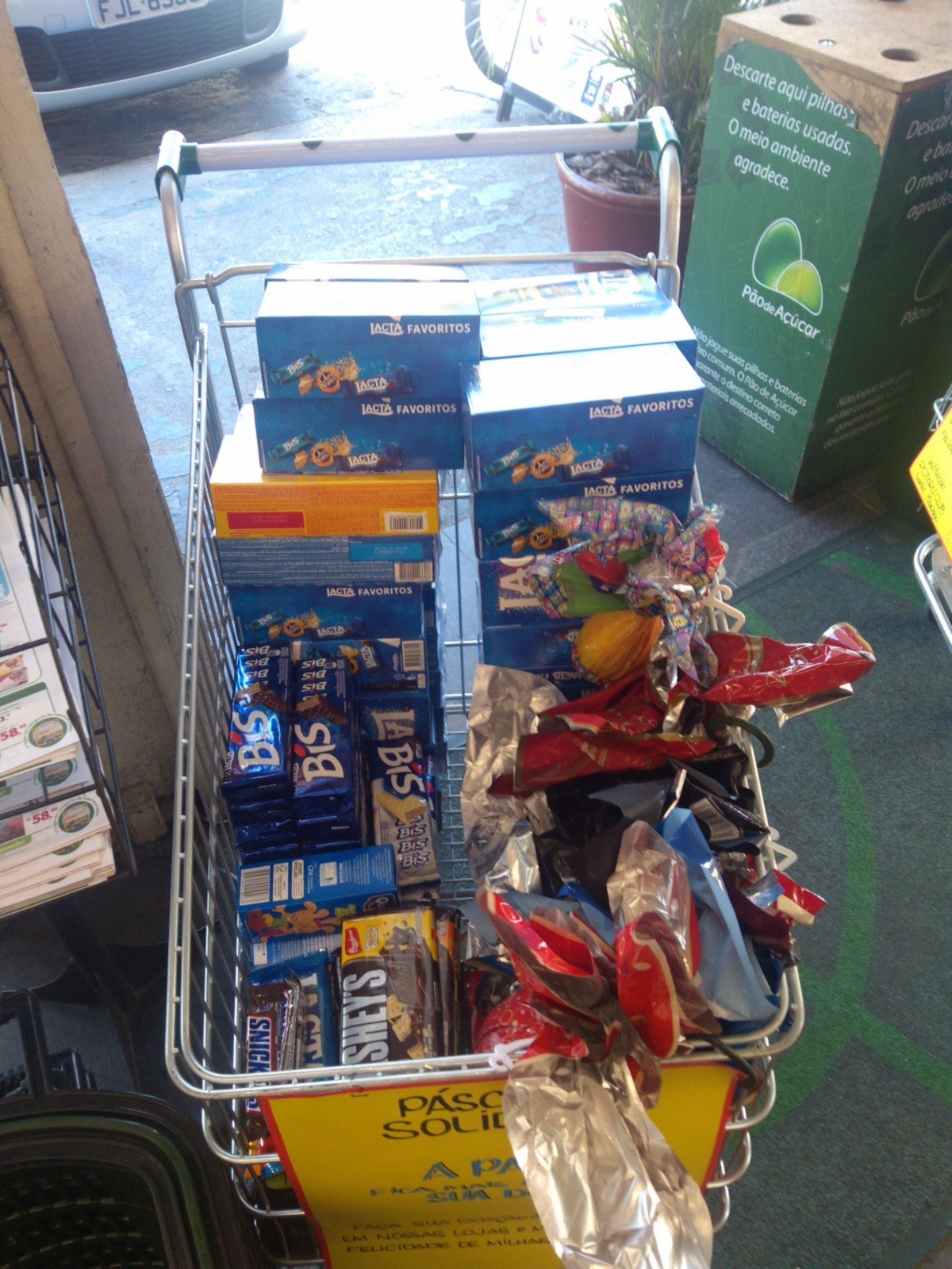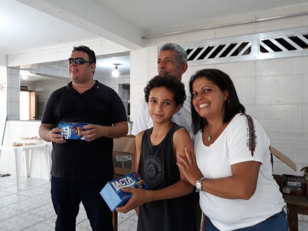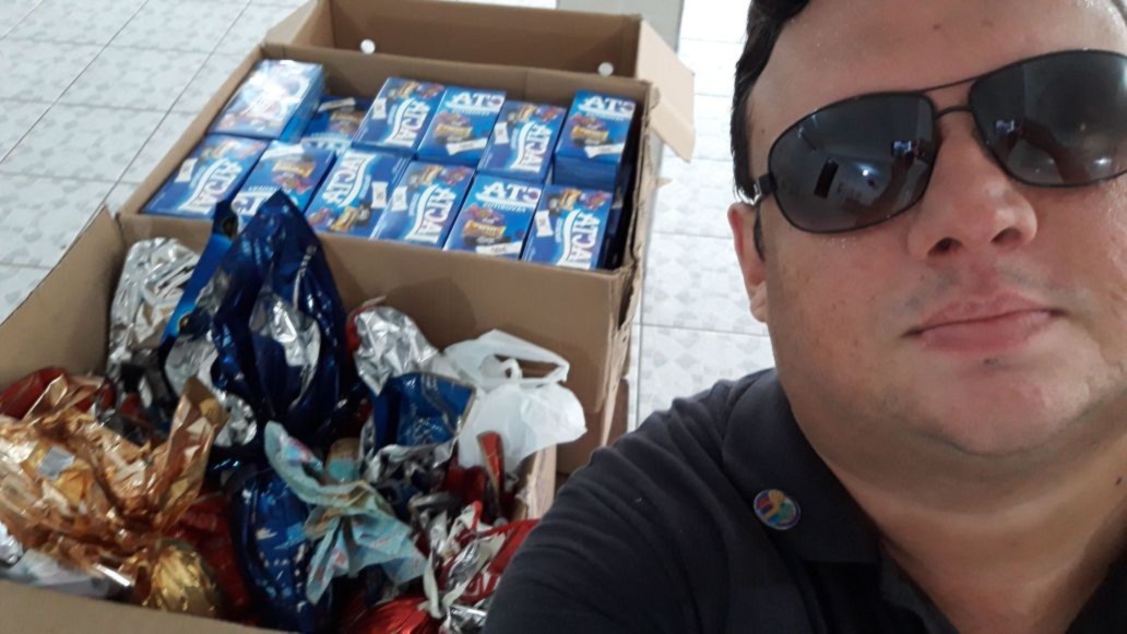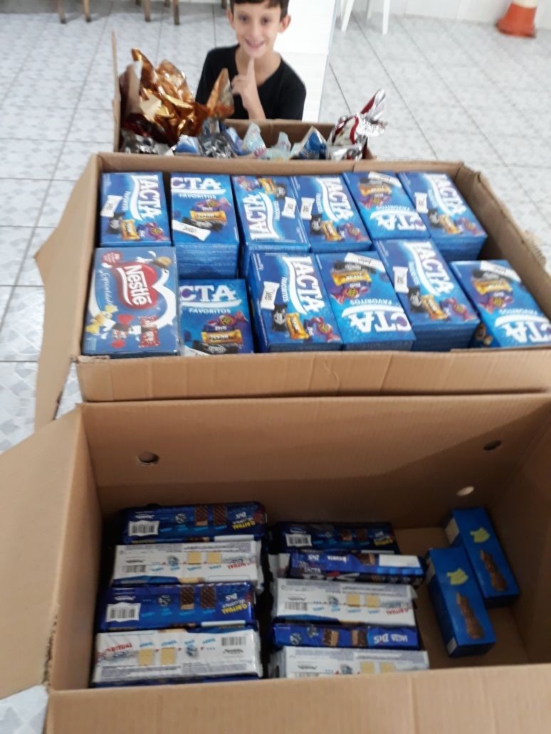 O Rotary Club de Santos Gonzaga realizou no sábado, dia 24 de março, a Páscoa Solidária, em parceria com o Grupo Pão de Açúcar. Com a participação de oito Companheiros, foram arrecadados 55 quilos de chocolates, que foram entregues para as crianças da Pastoral do Morro São Bento, em Santos.
