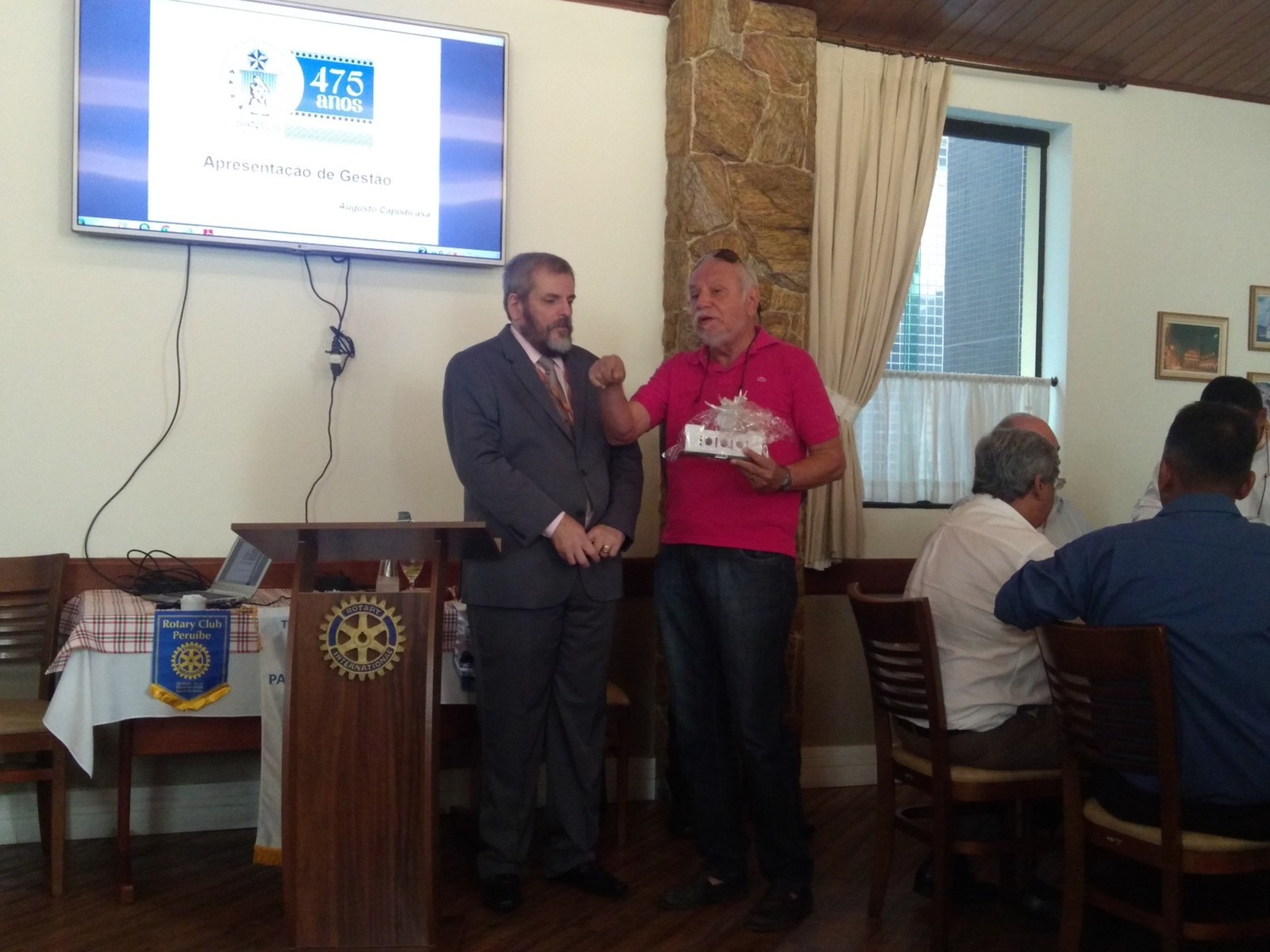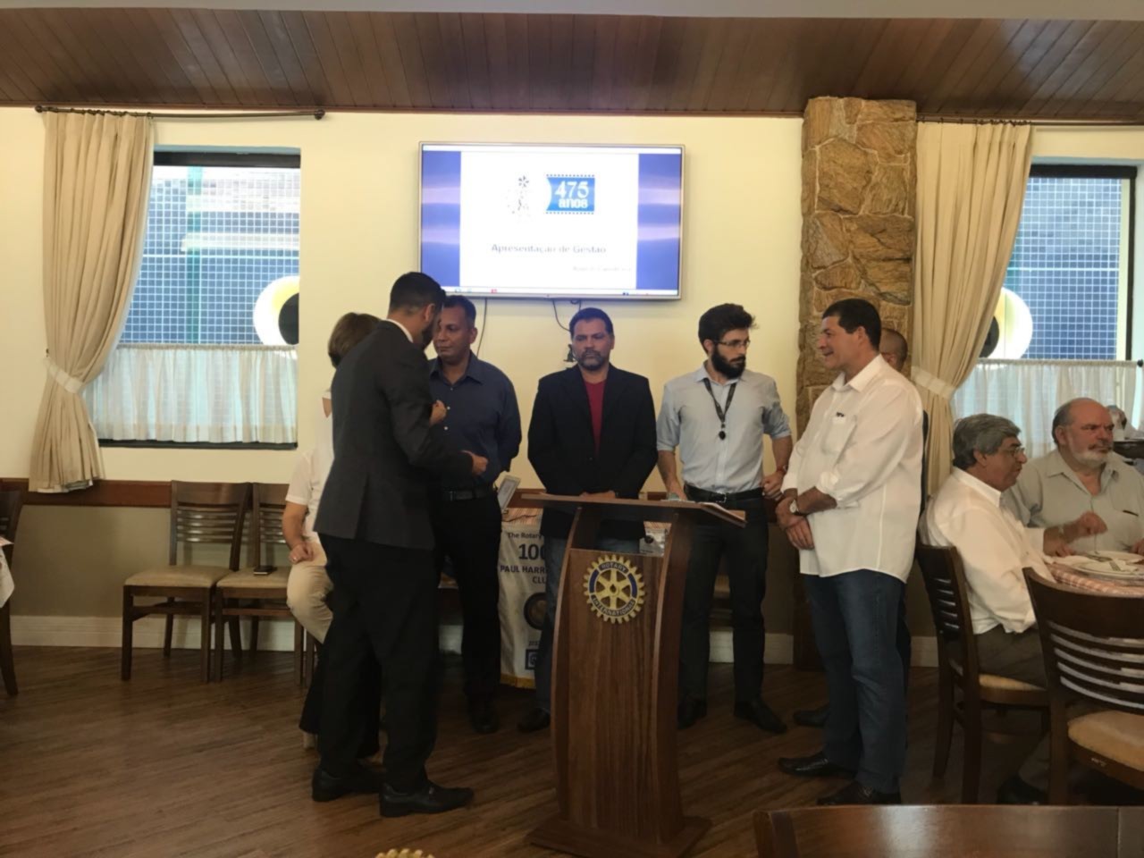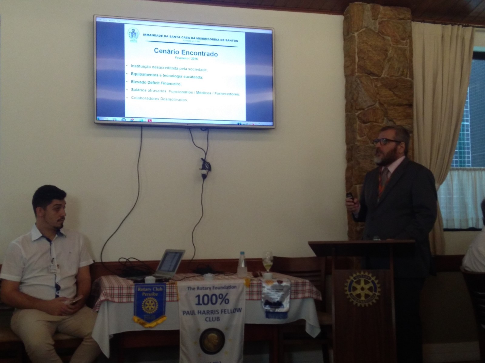 O Rotary Club de Santos Gonzaga realizou nessa sexta-feira, 4 de maio, a 19ª reunião ordinária, na Cantina di Lucca, em Santos, com a presença do diretor administrativo e financeiro da Santa Casa de Santos, Augusto Capodicasa, que fez um balanço desses últimos dois anos na gerência da entidade, que carrega o título de primeiro hospital das Américas, fundado por Brás Cubas. Momento de reflexão aconteceu no início da reunião, quando os mais de 30 convidados prestaram um minuto de silêncio pela passagem da nossa Companheira Teresinha Calçada, sócia honorária do Club.