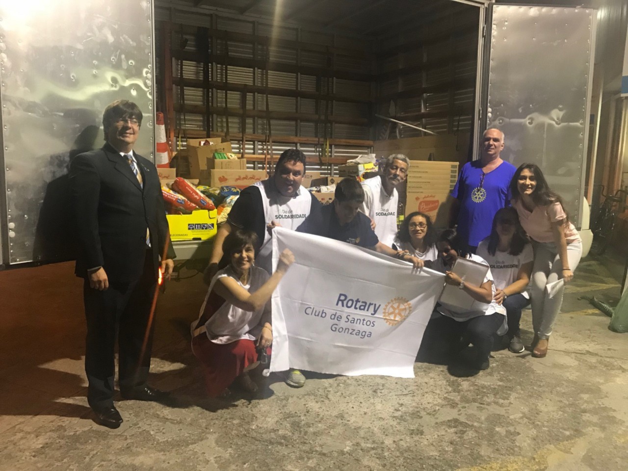 O Rotary Club de Santos Gonzaga, junto com diversos clubs de Rotary do Distrito 4.420, no dia 9 de dezembro, participou pela primeira vez do Dia da Solidariedade 2017, que completou três edições, em parceria com as lojas do Grupo Pão de Açúcar (GPA). Os Companheiros se revezaram das 8 às 22 horas, na loja da Avenida Conselheiro Nébias, em Santos, arrecadando 832 quilos de alimentos, que foram encaminhados para a Pastoral do Morro São Bento. De acordo com as estatísticas da gerência da loja, o Club bateu o recorde do ano passado. O GPA irá repassar ainda mais 10 de alimentos do total arrecadado. A Pastoral teve um corte de verba da Prefeitura e o total de alimentos abastecerá a entidade por cerca de quatro meses. A ação serviu muito para unir os Companheiros do Club.