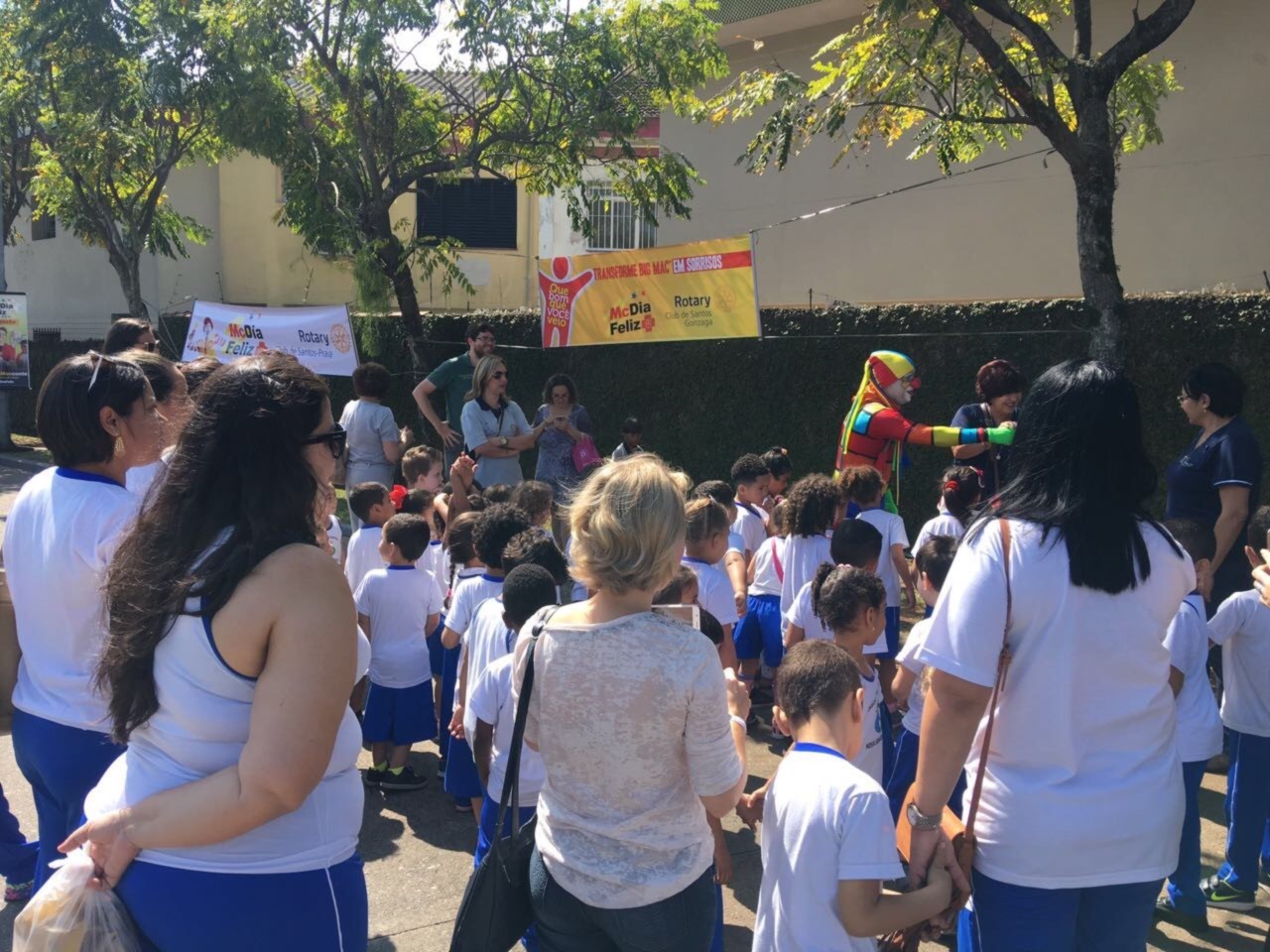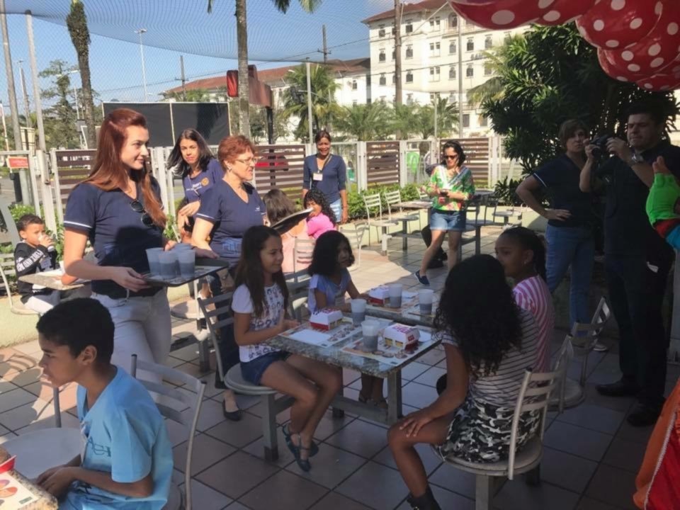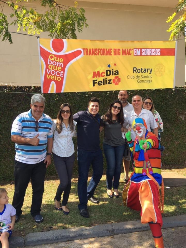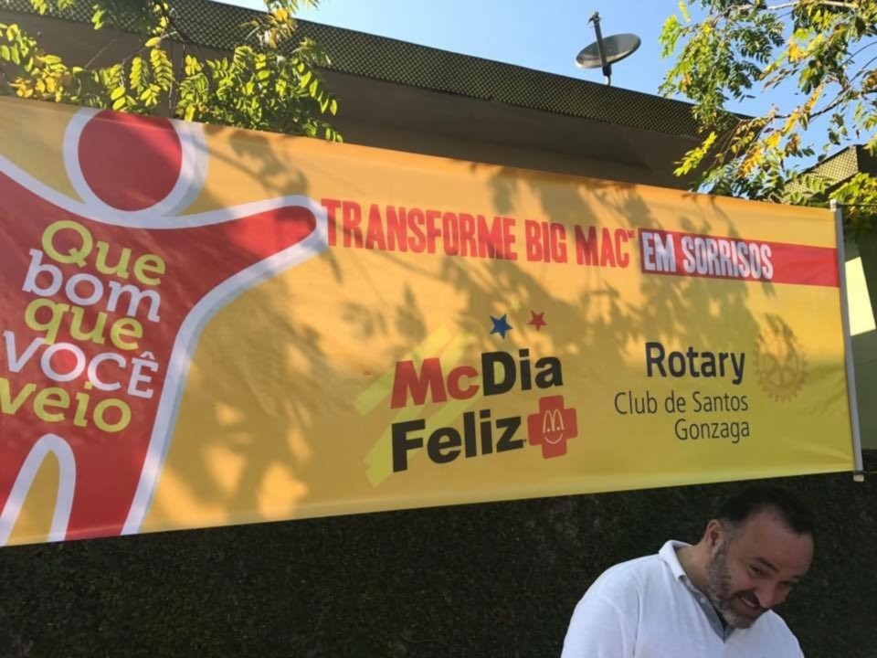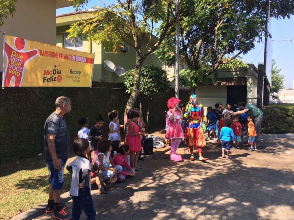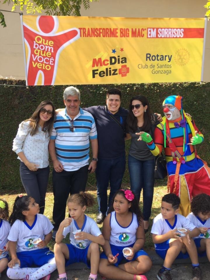 A ação conjunta envolvendo três Clubs de Santos, o RC de Santos Gonzaga, o RC de Santos Praia e o RC de Santos Boqueirão, levou 300 crianças de diversas entidades para participarem do McDia Feliz, na manhã de 26 de agosto, no McDonald?s que fica de frente à Santa Casa de Santos. Toda arrecadação com a venda dos 300 tickets foi destinada ao setor de Oncologia Infantil da Irmandade da Santa Casa da Misericórdia de Santos. O McDia Feliz é a maior campanha do País em prol de adolescentes e crianças com câncer. Muito mais do que uma campanha de arrecadação, o McDia Feliz é uma iniciativa que mobiliza os mais diferentes setores da sociedade para contribuir para o aumento dos índices de cura do câncer infantil e juvenil no Brasil. A participação recorde do nosso Club, com a compra de 100 tickets e 15 Companheiros, mostra que estamos fazendo a diferença, ressalta o atual presidente Cléber Léo Bortolamasi.