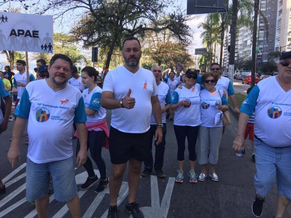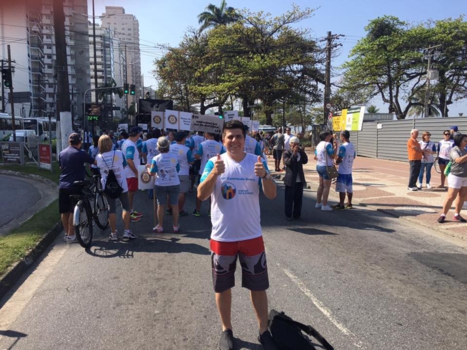 Com oito Companheiros, o Rotary Club de Santos Gonzaga participou da 10ª Caminhada promovida pelo RC de Santos Vila Belmiro, realizada na manhã de 27 de agosto, pelas praias de Santos, com partida pelo Bairro do Gonzaga.