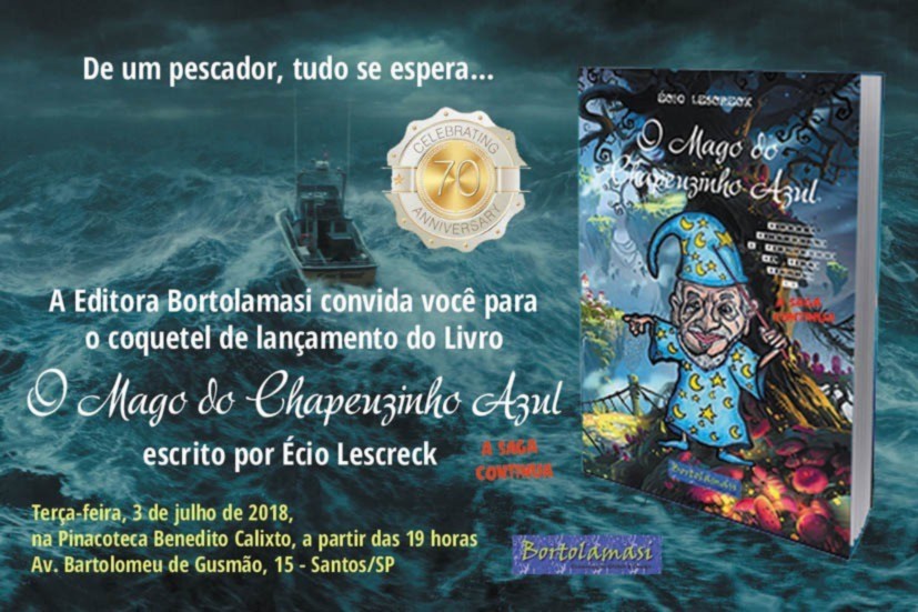 Para comemorar o dia do escritor, que nos trazem sabedoria e diversão. Agradescemos o nosso escritor companheiro Écio Lescreck e comentamos sobre a festa de lançamento de seu novo livro O Mago do Chapeuzinho Azul. Maravilhoso coquetel de nosso sócio honorário, na Pinacoteca Benedito Calixto terça-feira, dia 03 de julho de 2018, às 19 horas. Livro muito divertido.