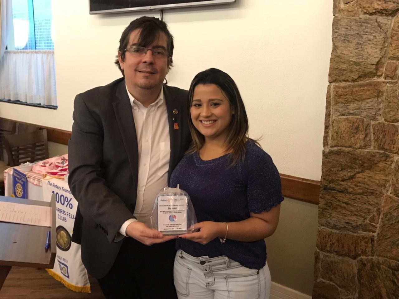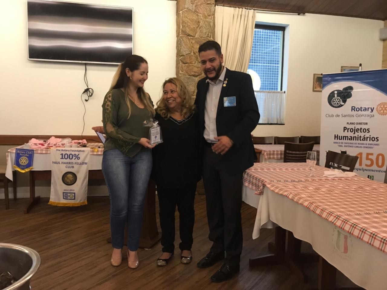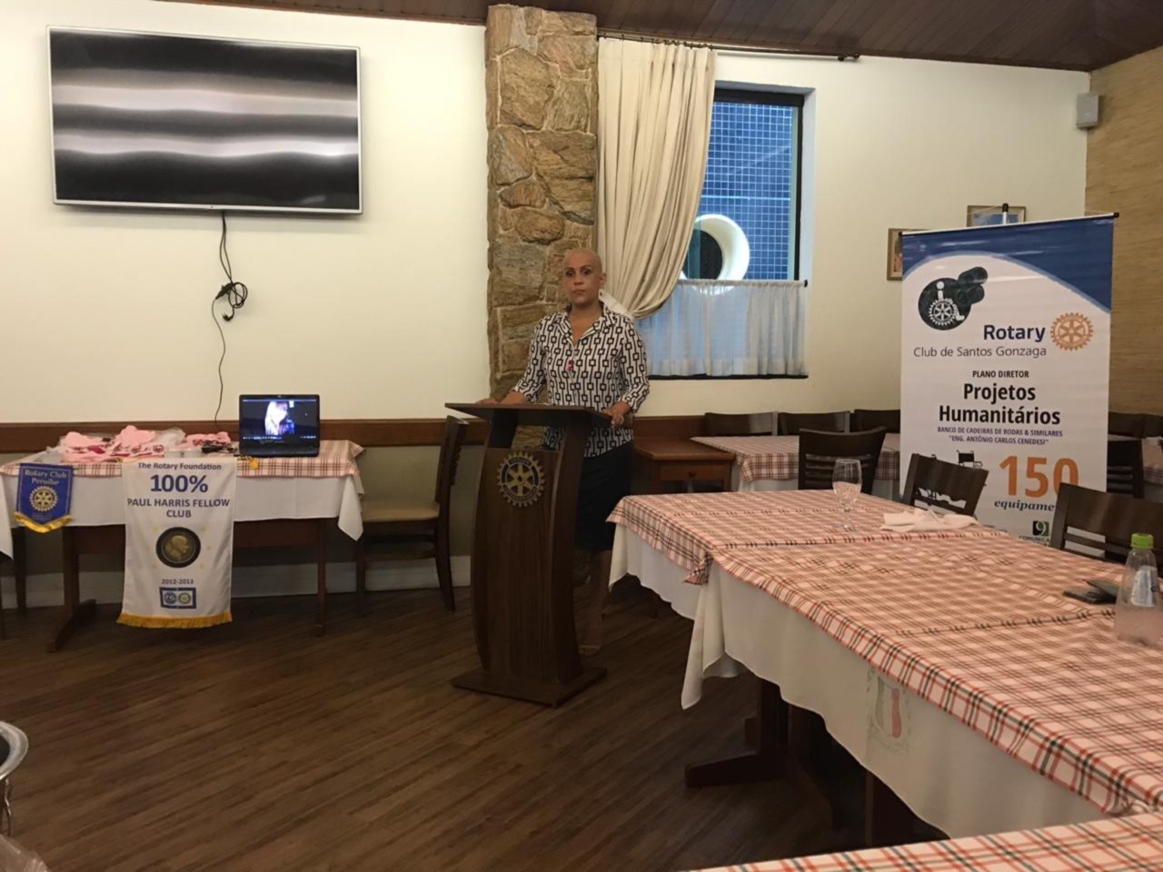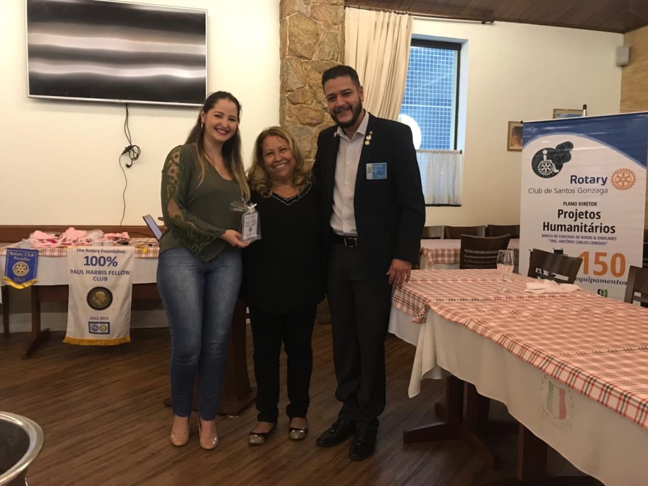 Nessa sexta-feira o Rotary club de Santos Gonzaga teve a honra de receber a palestra da Viviane Bileski, sobre o tema: Os principais tipos de cânceres femininos. Excelente assunto para sabermos nos prevenir e vencer essa doença. Aproveitando o momento de reflexão, o club entregou uma premiação de agradecimento as pessoas honrosas que tanto ajudaram na ação de dia das crianças. Isso enobrece o espirito dos companheiros.