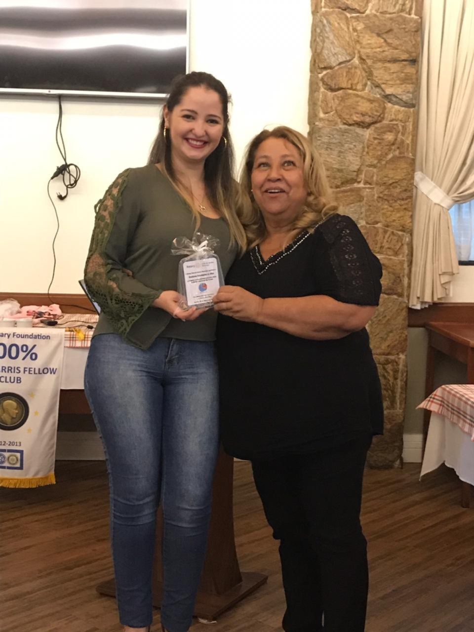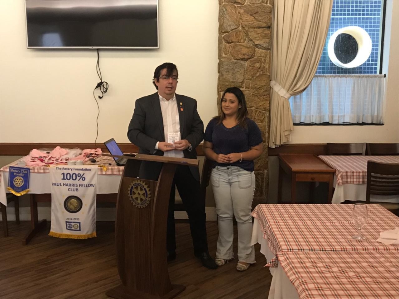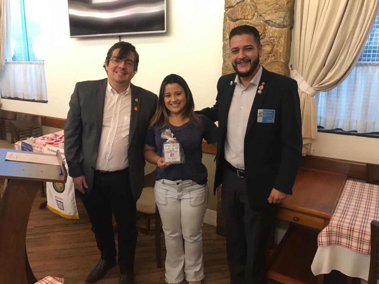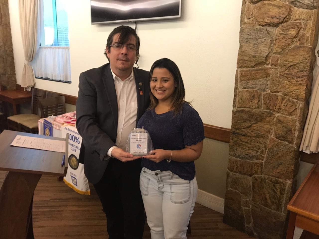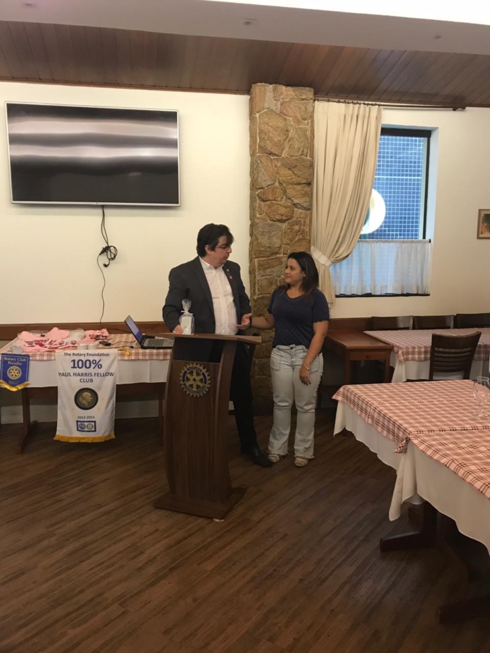 Nessa sexta-feira o Rotary club de Santos Gonzaga teve a honra de receber a palestra da Viviane Bileski, sobre o tema: Os principais tipos de cânceres femininos. Excelente assunto para sabermos nos prevenir e vencer essa doença. Aproveitando o momento de reflexão, o club entregou uma premiação de agradecimento as pessoas honrosas que tanto ajudaram na ação de dia das crianças. Isso enobrece o espirito dos companheiros.