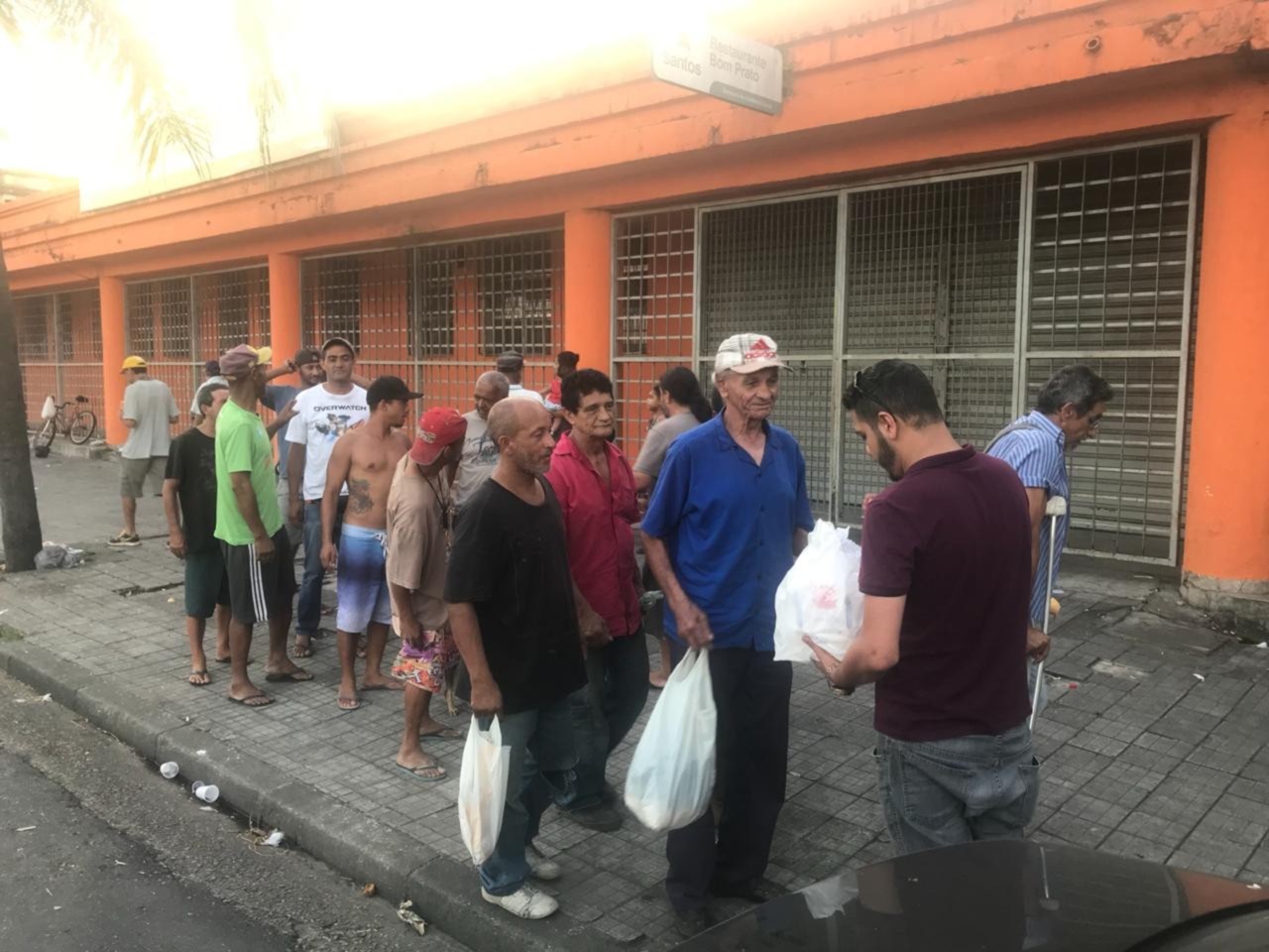 Como acontece toda a quinta-feira, distribuição de sanduíches no Mercado Municipal de Santos. Desta vez com a participação do presidente inspirador André Cara. São mais de 2.500 sanduíches distribuídos até aqui!