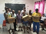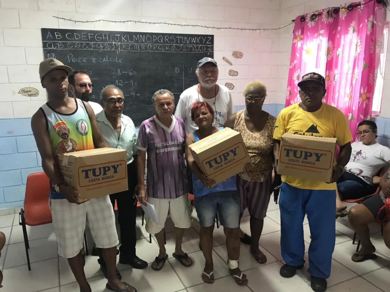 Distribuição de Cestas Básicas na Vila Alemoa, neste sábado, ação do Companheiro Écio Lescreck, através do Primado da Razão, em parceria com o Rotary Club de Santos Gonzaga.