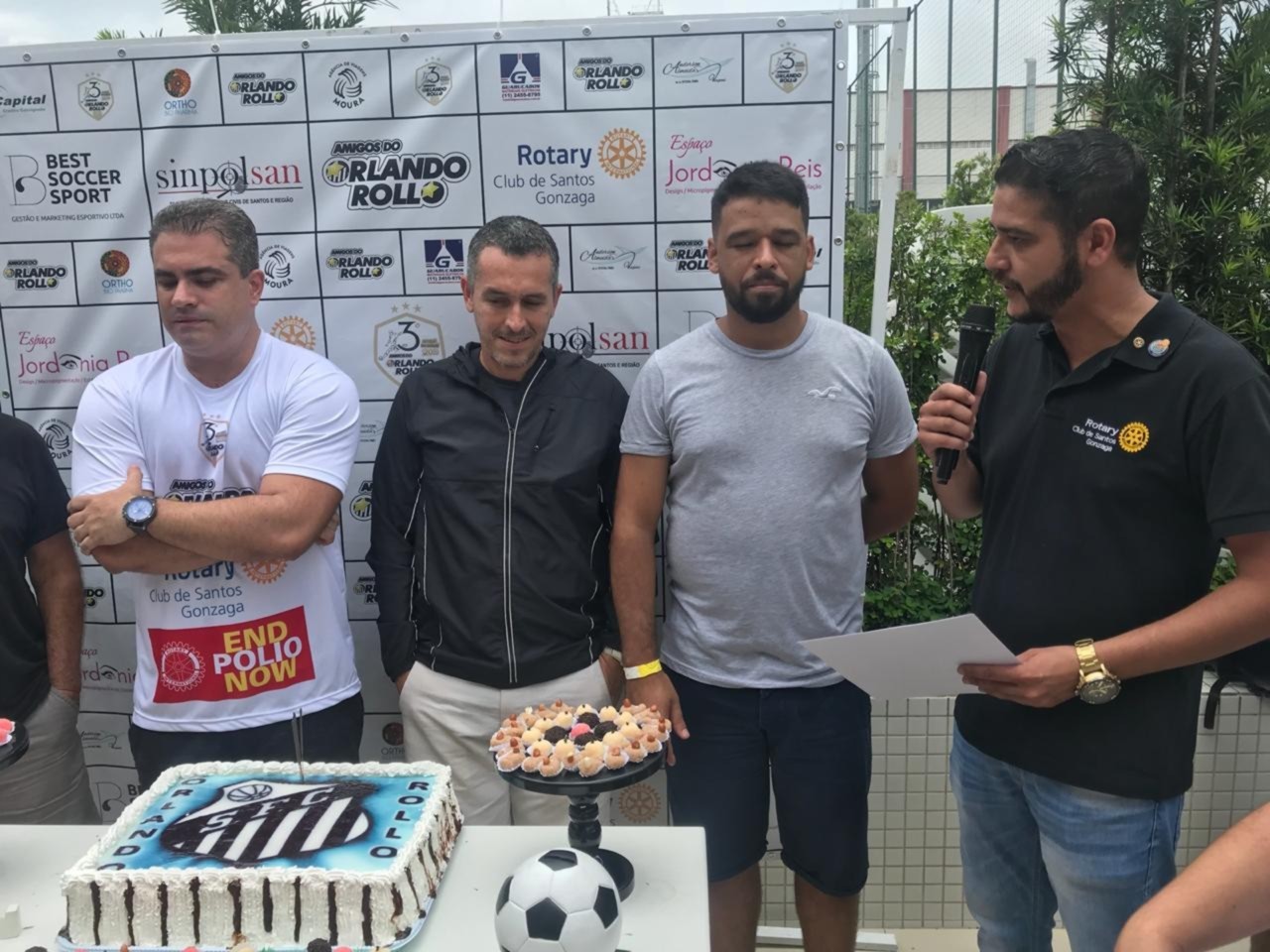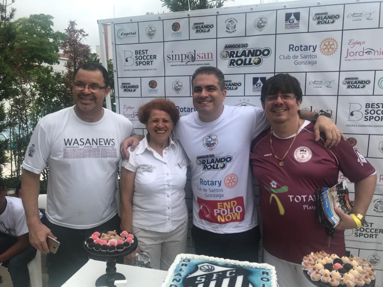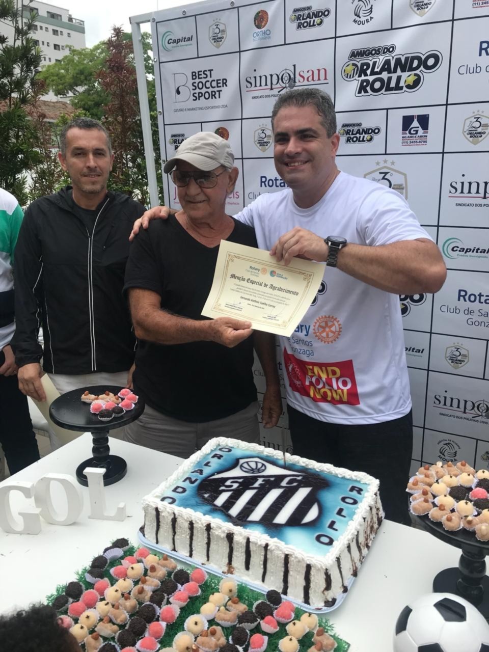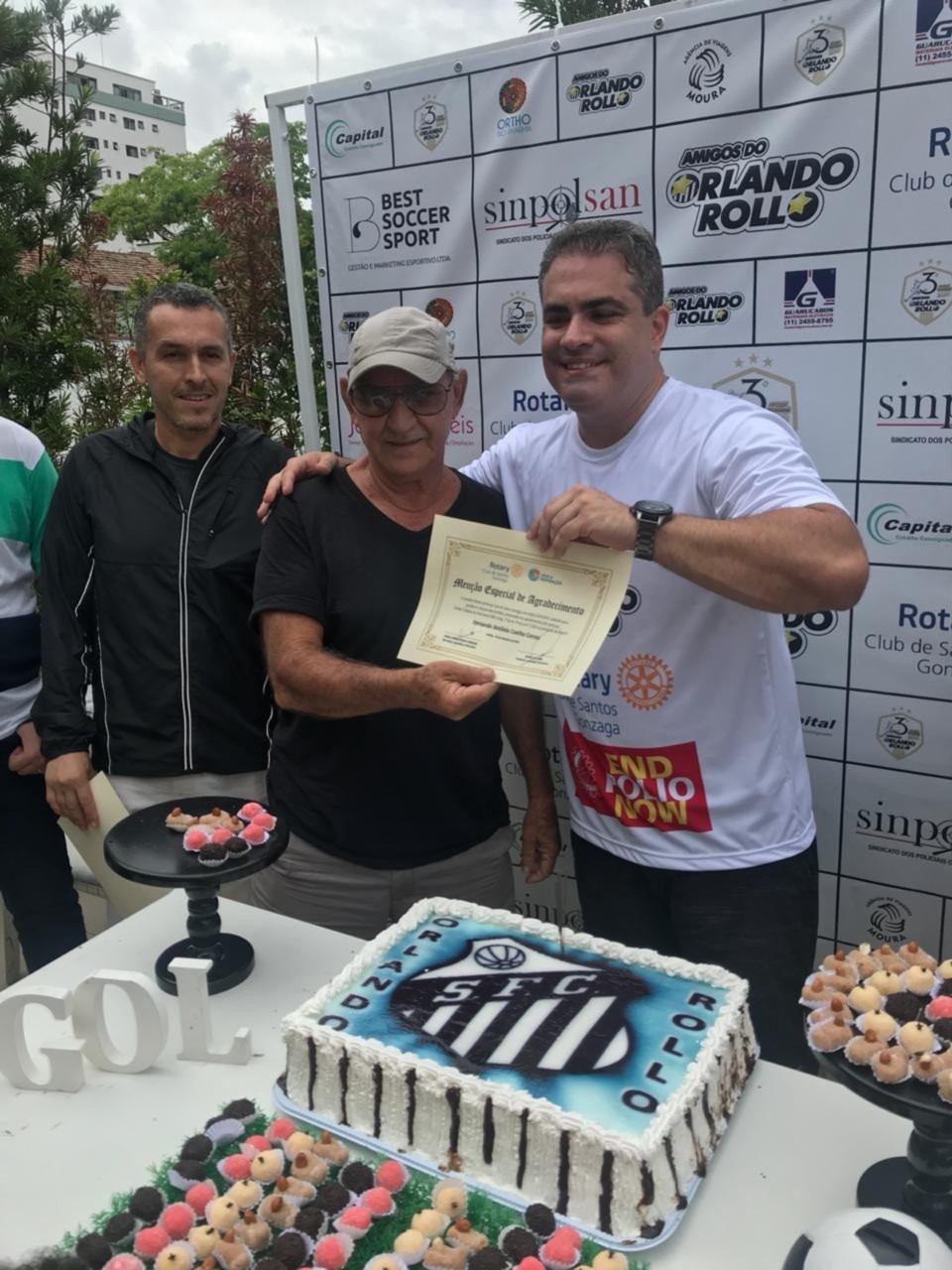 Debaixo de muita chuva, o Futebol Solidário do Rotary Club de Santos Gonzaga arrecadou 207 quilos de alimentos, que serão entregues para os moradores do Bairro Pilão da Cidade de Cubatão. O evento faz parte do calendário oficial da Cidade de Santos. Na ocasião, comemorou-se os 41 anos do Companheiro Orlando Rollo. Presença de dezenas de ex-jogadores do SFC e de diversas autoridades políticas e dignidades maçônicas.