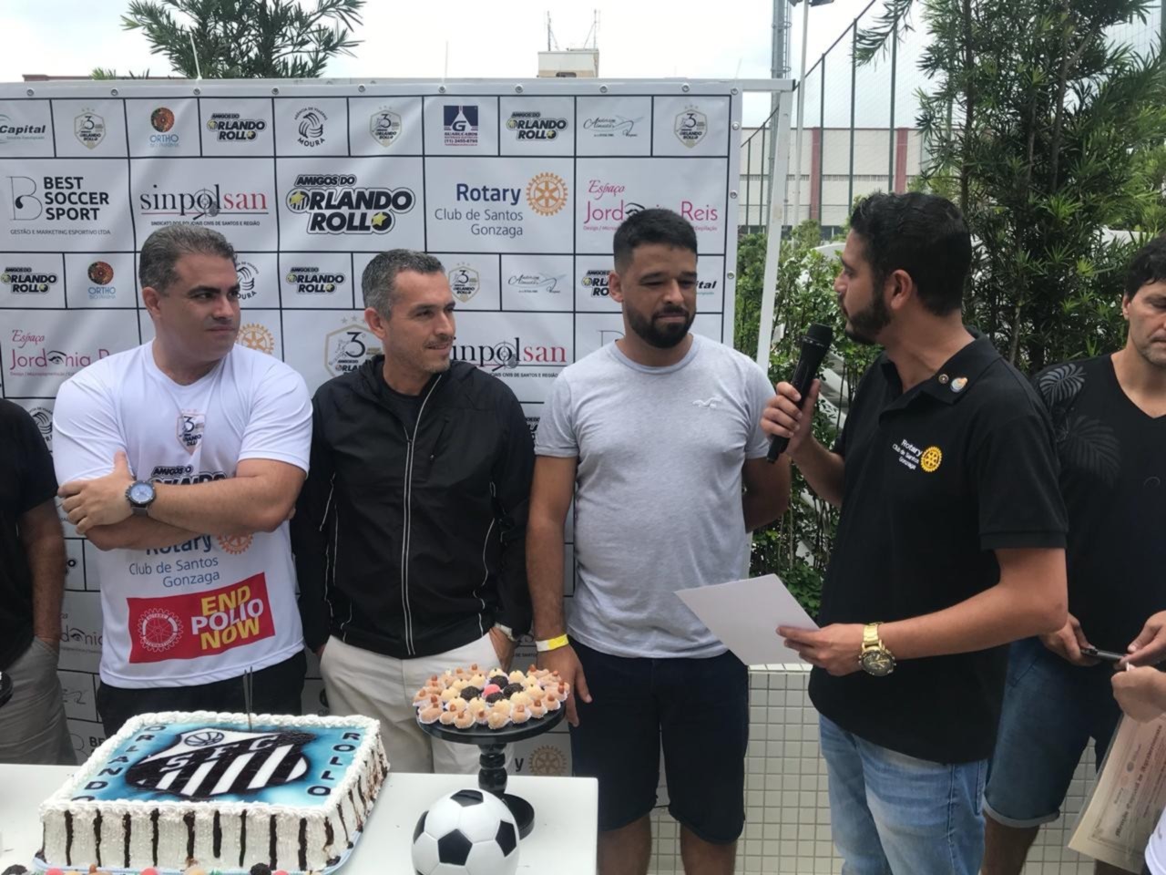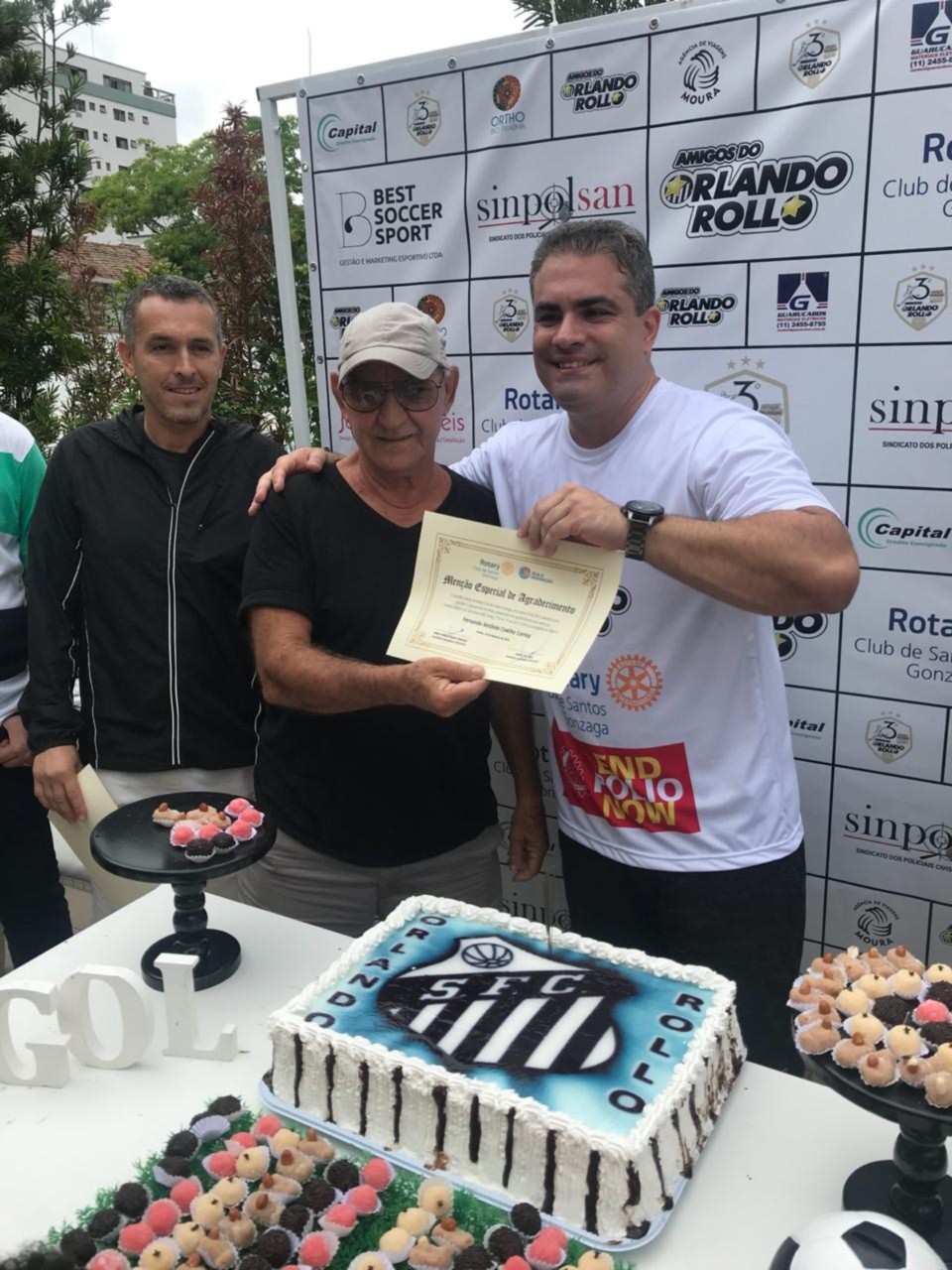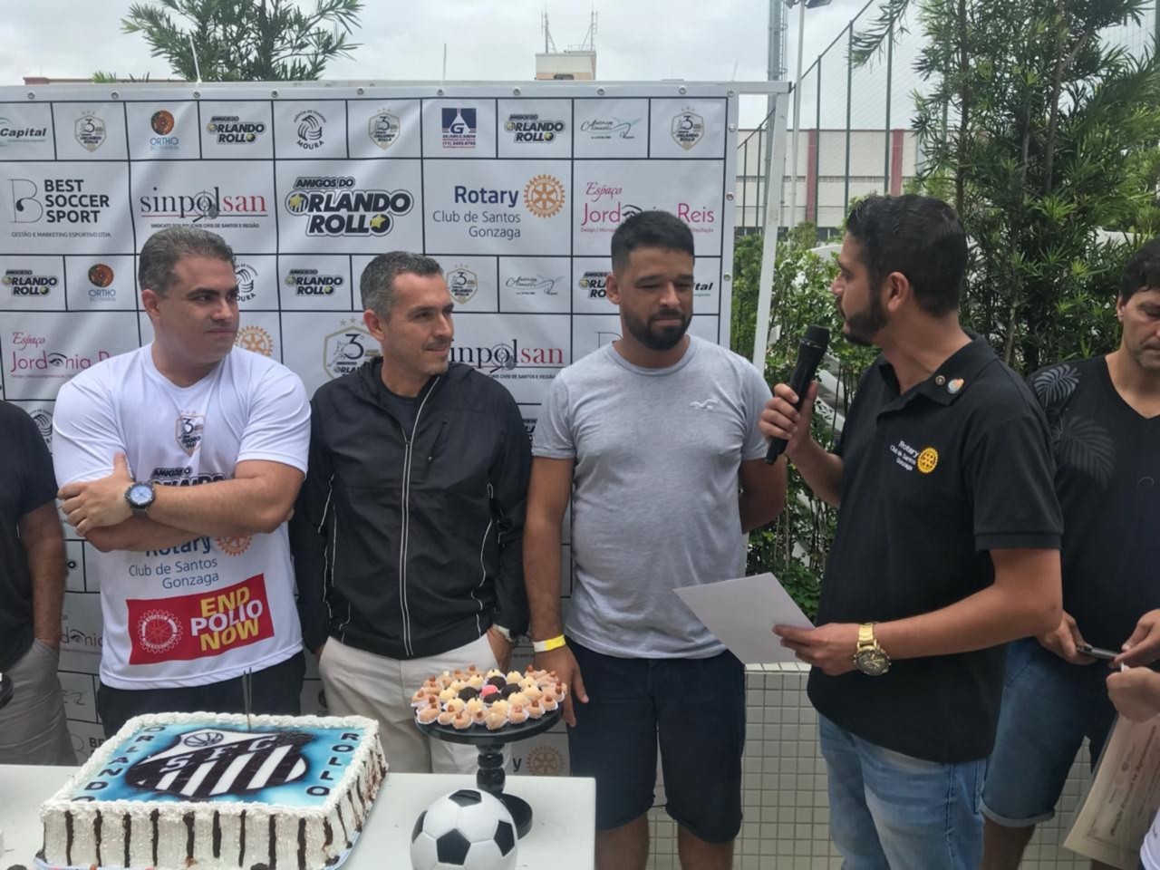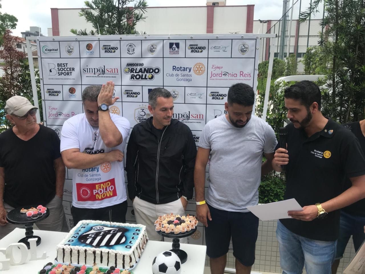 Debaixo de muita chuva, o Futebol Solidário do Rotary Club de Santos Gonzaga arrecadou 207 quilos de alimentos, que serão entregues para os moradores do Bairro Pilão da Cidade de Cubatão. O evento faz parte do calendário oficial da Cidade de Santos. Na ocasião, comemorou-se os 41 anos do Companheiro Orlando Rollo. Presença de dezenas de ex-jogadores do SFC e de diversas autoridades políticas e dignidades maçônicas.