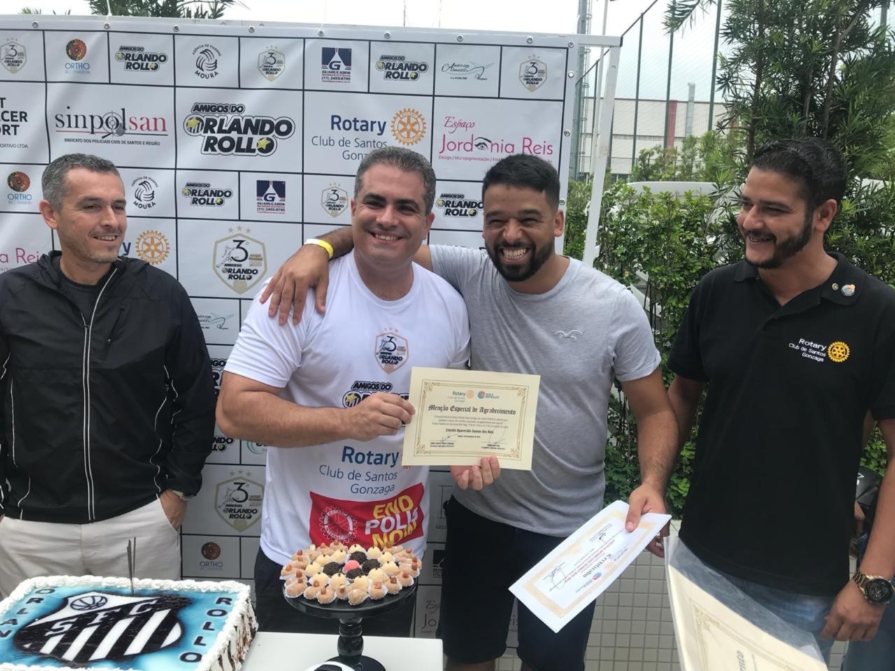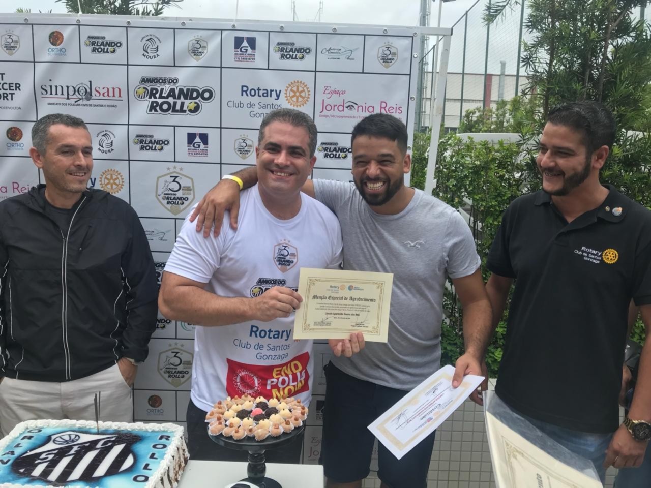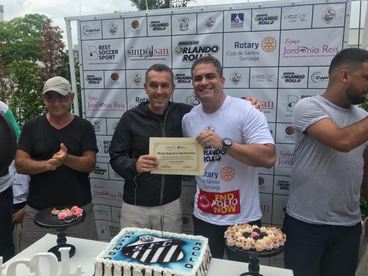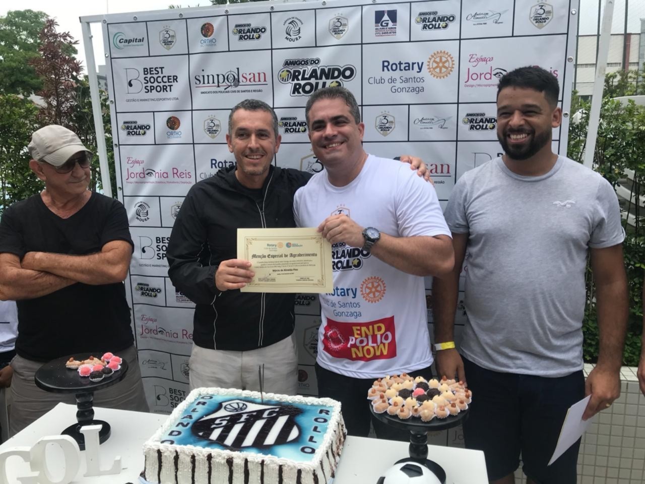 Debaixo de muita chuva, o Futebol Solidário do Rotary Club de Santos Gonzaga arrecadou 207 quilos de alimentos, que serão entregues para os moradores do Bairro Pilão da Cidade de Cubatão. O evento faz parte do calendário oficial da Cidade de Santos. Na ocasião, comemorou-se os 41 anos do Companheiro Orlando Rollo. Presença de dezenas de ex-jogadores do SFC e de diversas autoridades políticas e dignidades maçônicas.