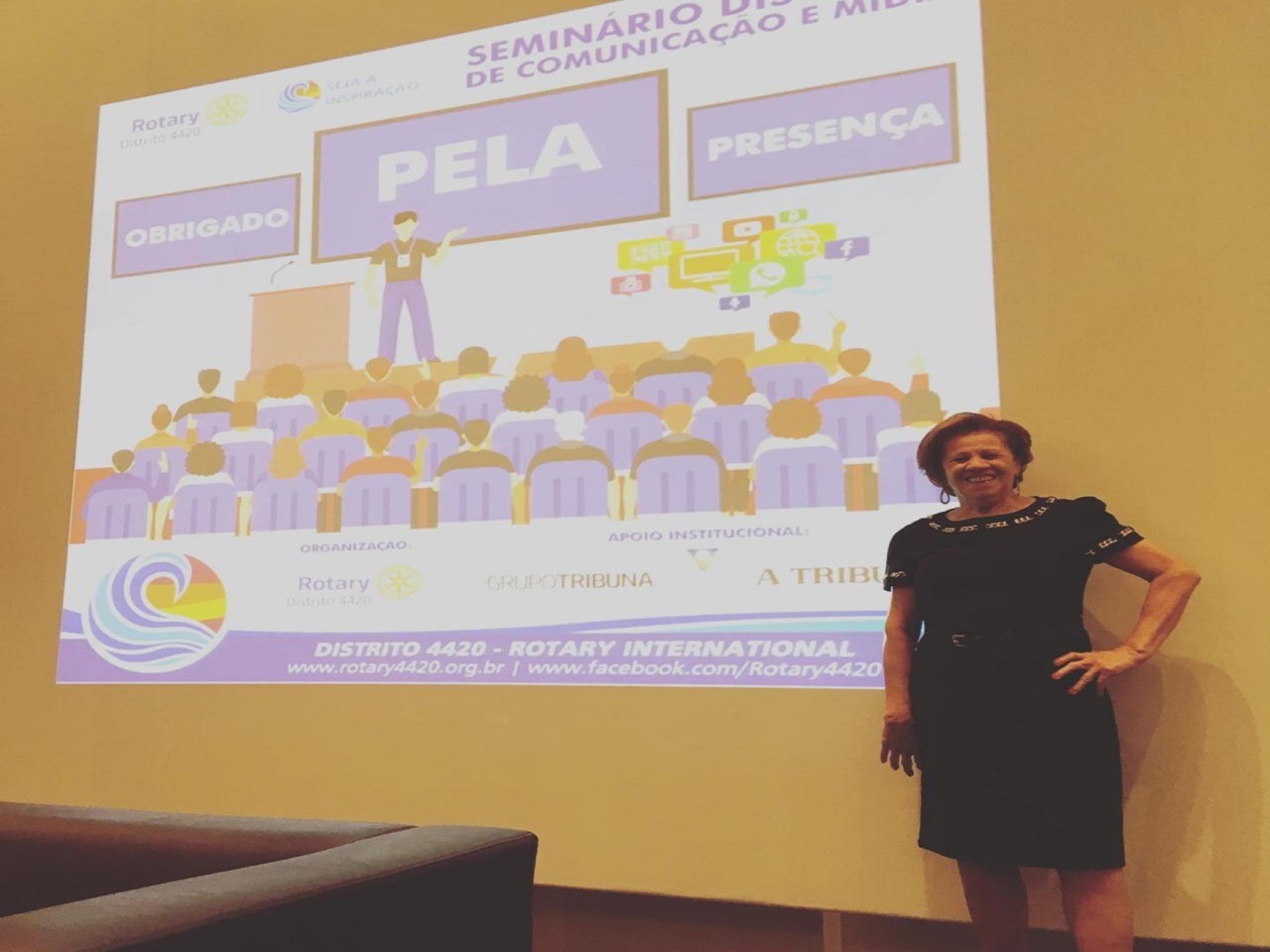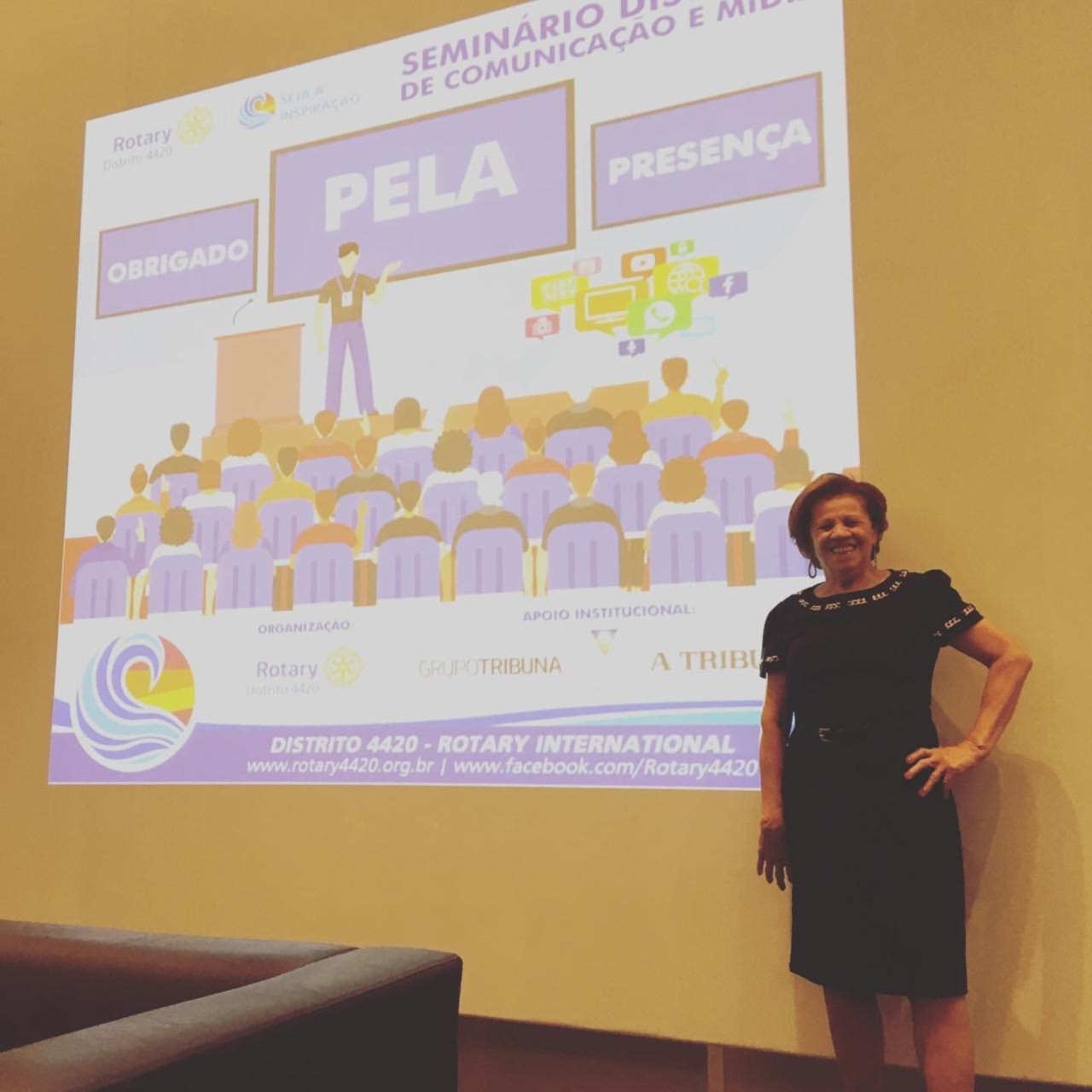 Nossa companheira polivalente Rosa Moretti representou o Rotary Club de Santos Gonzaga no Seminário de Imagem Pública do Distrito 4.420, realizado também nesta noite. Parabéns, Rosa.