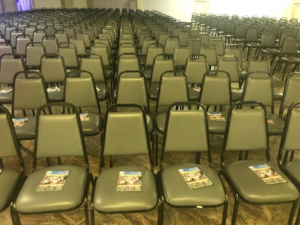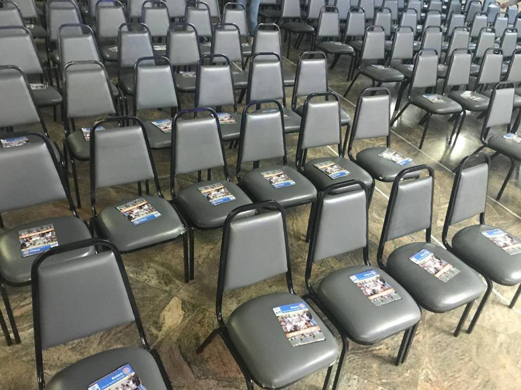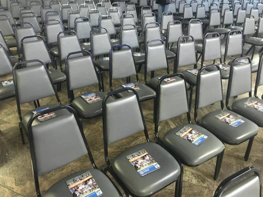 Durante o intervalo entre as palestras da 28ª Conferência Distrital 4.420, os Companheiros da imagem pública distribuíram nas cadeiras do plenário a Revista do Clube para que cada participante, assim que chegar, receba um exemplar das últimas notícias e Projetos realizados pelo Rotary Club de Santos Gonzaga.