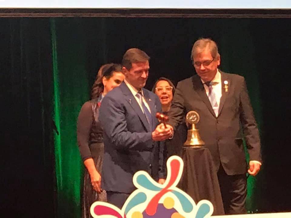 Continuando, tivemos o discurso do novo governador do Distrito 4.420, Adriano Valente.