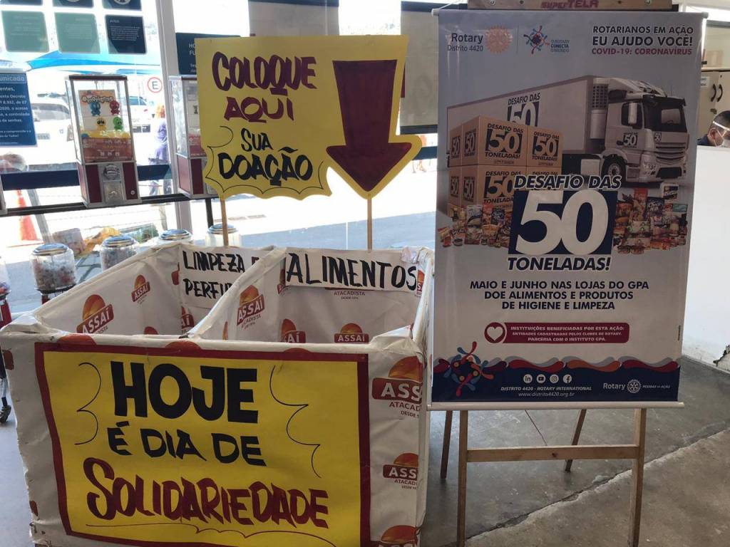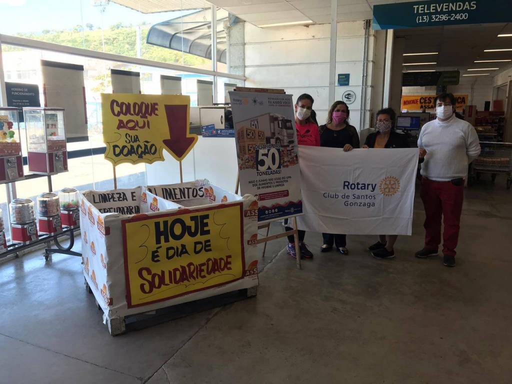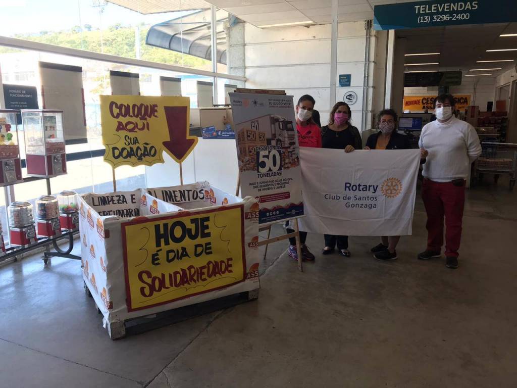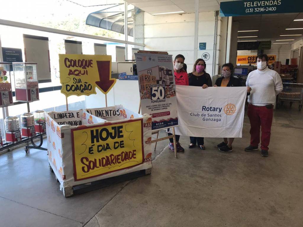 Com mais 12 horas de trabalho voluntário, encerramos mais uma ação humanitária. Fizemos a coleta de alimentos em seis lojas do Grupo Pão de Açúcar. Oito Companheiros foram envolvidos nessa ação, que resultou em mais de uma tonelada de alimentos doados pelas pessoas nessas Lojas. O Grupo Pão de Açúcar mostra-se como um empenhado parceiro nas causas rotárias. Nessa conexão, o RCS Gonzaga, através do seu presidente interino, fechou uma ação exclusiva para sábado, o dia todo, onde estaremos em campo estimulando à doação. Os alimentos a serem arrecadados no dia se somarão aos arrecadados hoje.